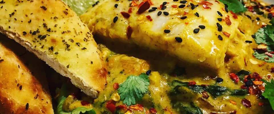 - When the salmon has had 5 minutes in the oven, add the sliced Cavolo Nero/kale to a ovenproof dish and drizzle with the other teaspoon of olive oil, add the garlic paste and mix to coat. Season with salt and pepper and place this in the oven, alongside the salmon. Continue to cook for 10 minutes.